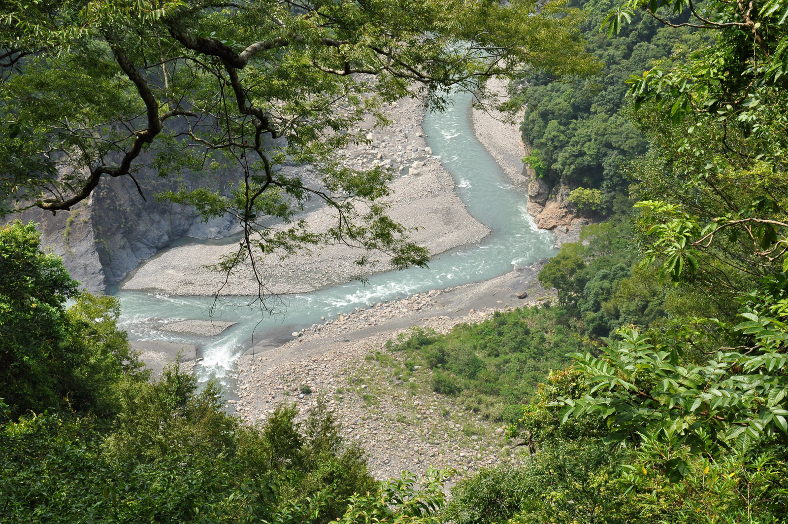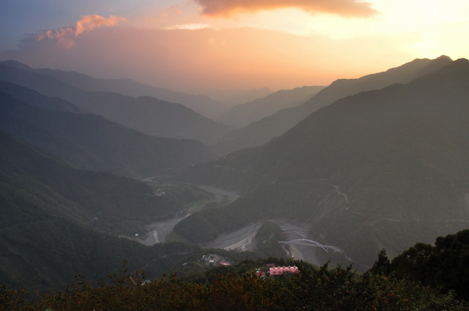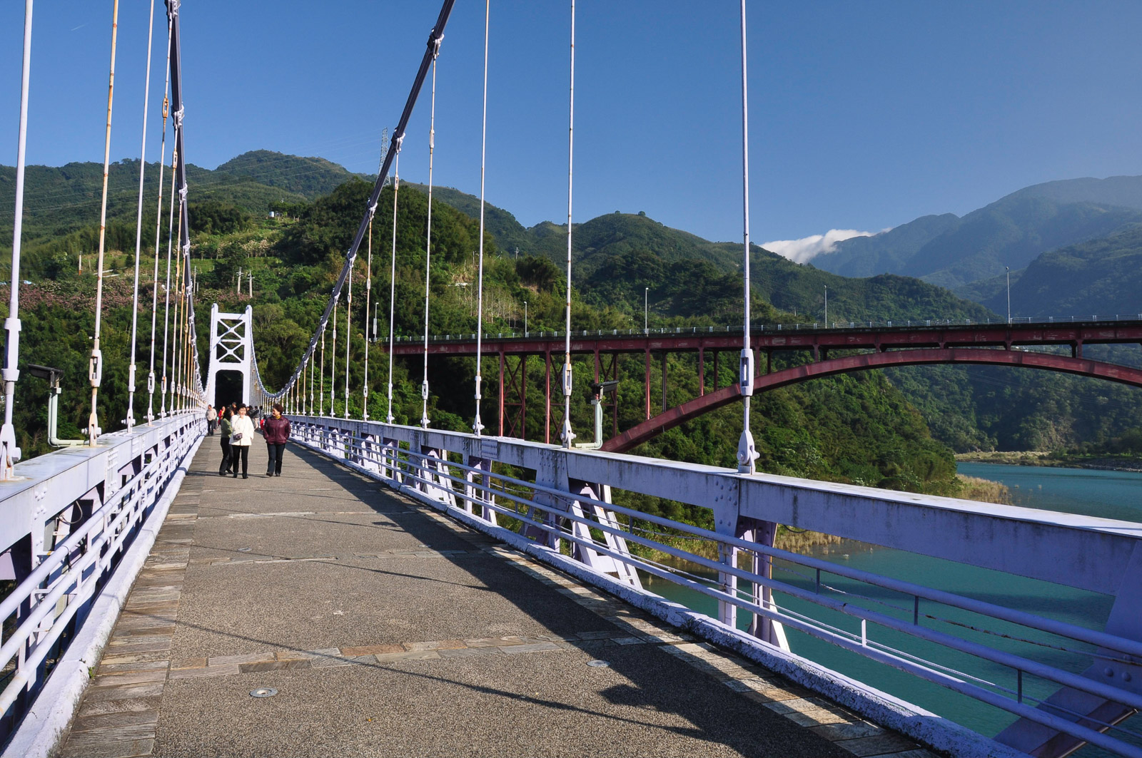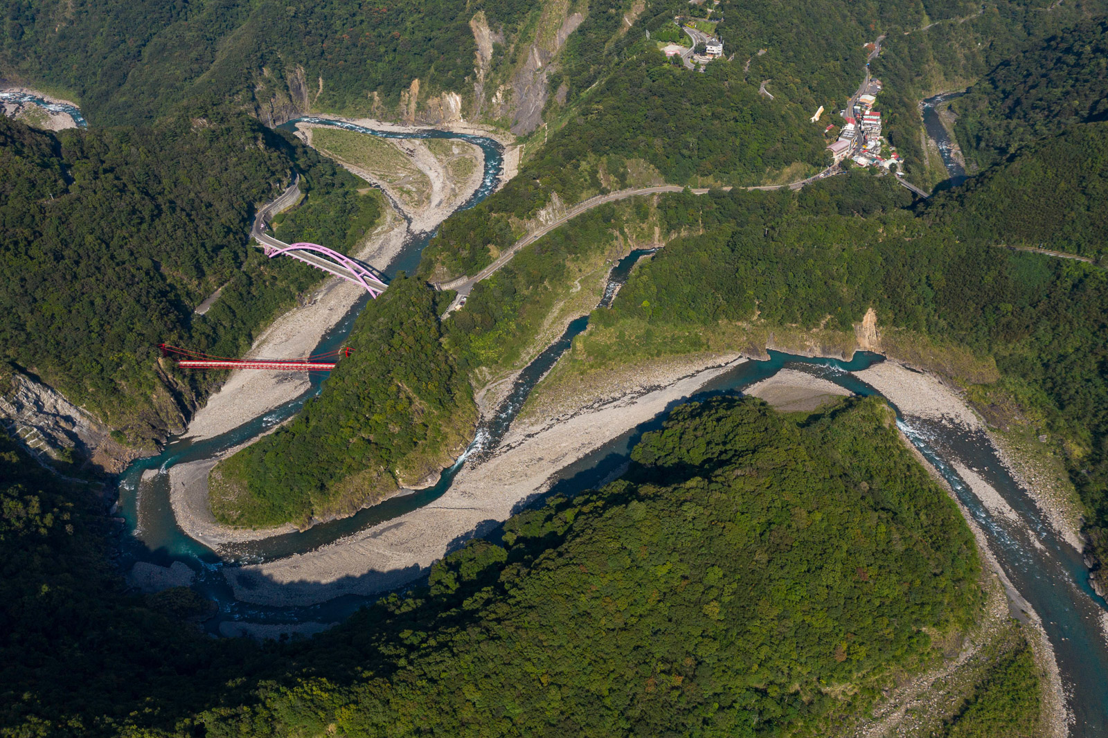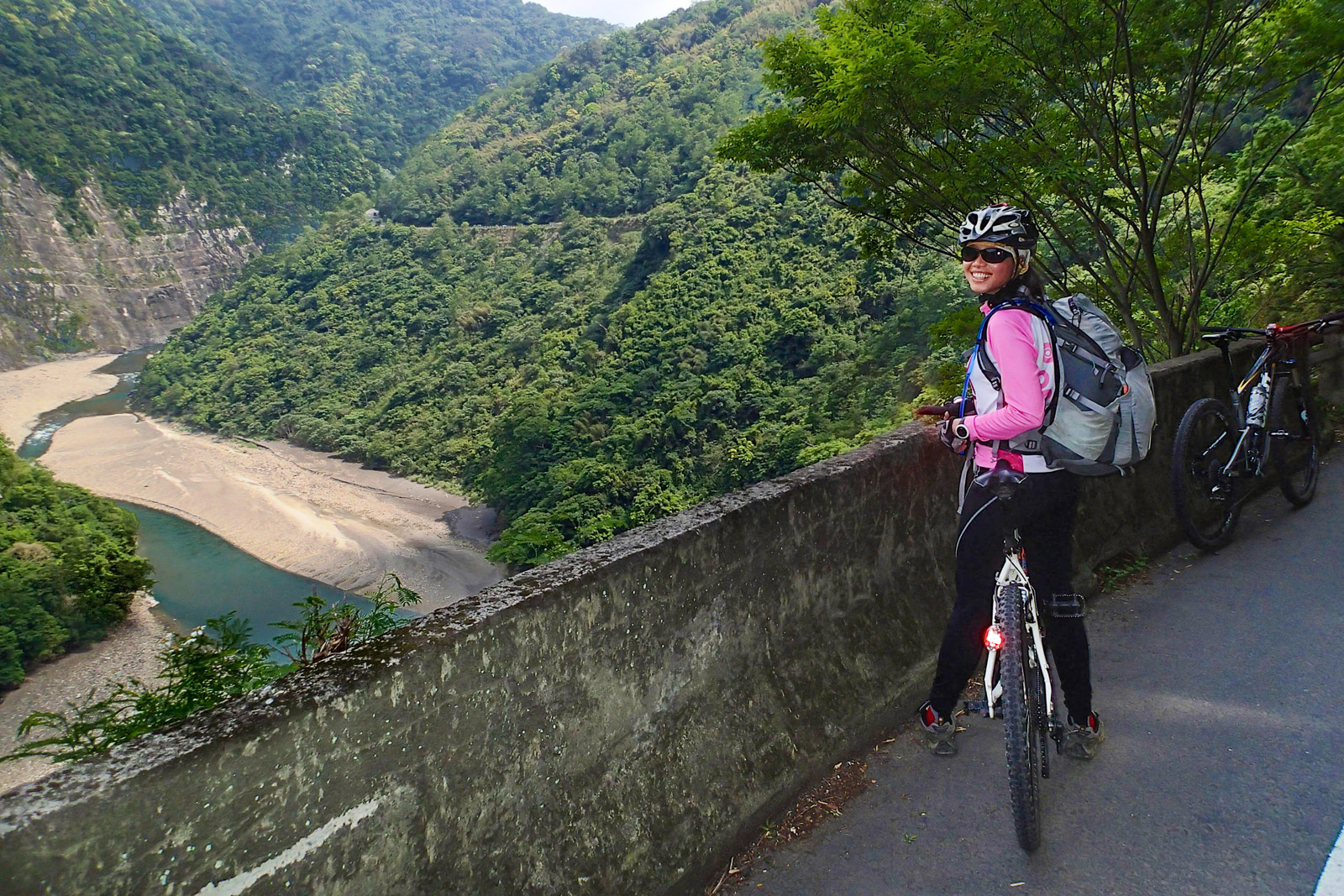 Dál již budete pokračovat po silnici č. 7. Provoz na silnici rapidně řídne a před vámi je přibližně 30 kilometrů jízdy po silnici spojující západní a východní pobřeží Taiwanu. Poblíž vesnice Loufu se můžete zastavit na vyhlídku na růžový závěsný most postavený nad přehradou Shimen a hurá dál! Ze silnice č. 7 po následujících 25 kilometrů není kam odbočit. Cesta je vytesaná ve svahu vysoko nad nádherným údolím a za jízdy se budete neustále kochat nádhernou přírodou a výhledy všude okolo vás. Úzká silnička neustále mírně stoupá, a tak vám ani na chvíli nedá vydechnout.