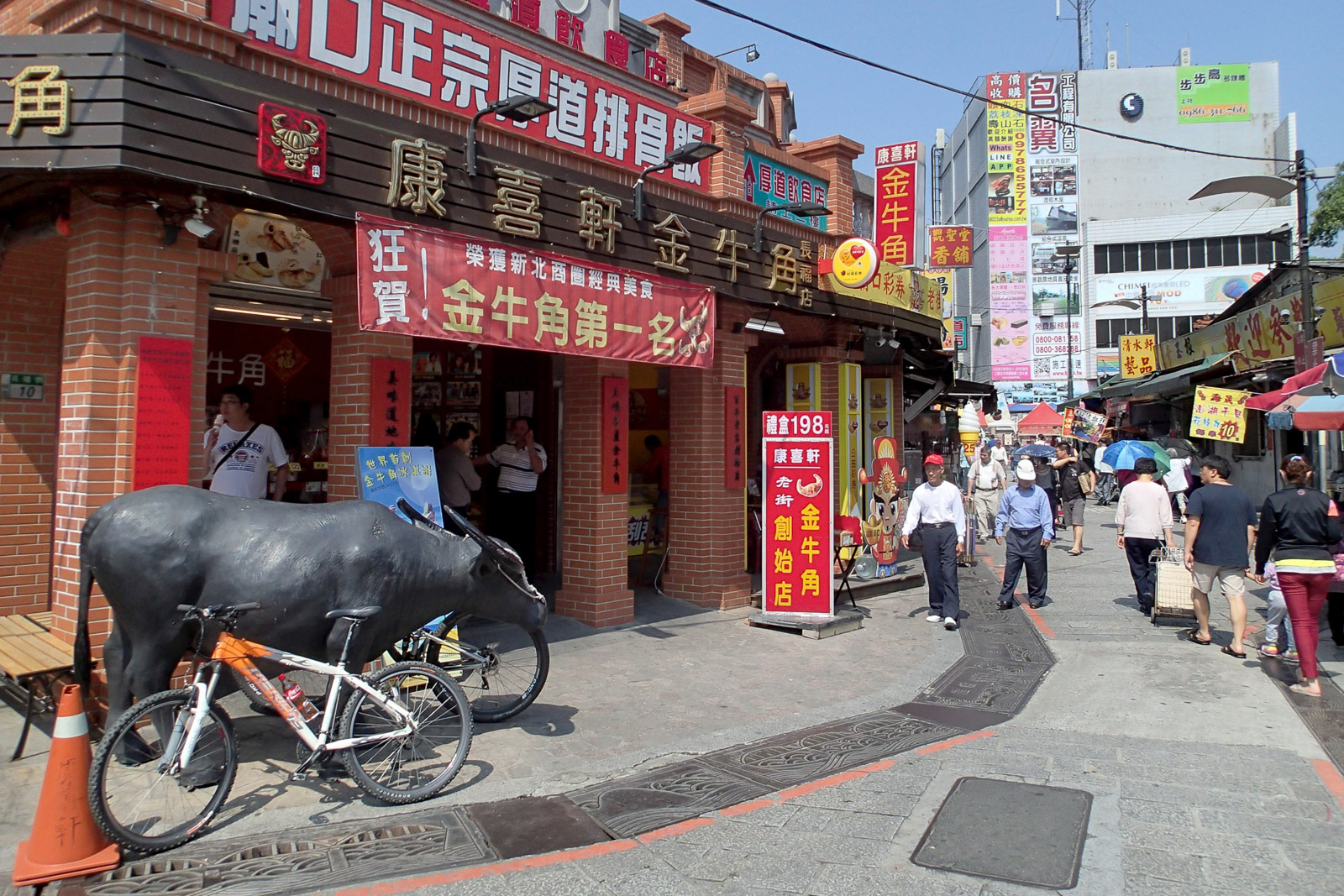 Když vystoupíte v Yingge z vlaku, můžete si pogratulovat. Nejtěžší část dnešní cesty máte vlastně za sebou. Vlakové nádraží se nachází na okraji centra. Yingge je známé pro svoji výrobu keramiky a tak, pokud máte chvilku času, zajeďte se nakrátko podívat do příjemného starého města s obchůdky plnými čajových konviček, hrnečků a vlastně všeho možného, co lze z keramiky vytvořit (návštěvu populárního muzea keramiky si však nechte na příště. Na to by nebyl čas). Z Yingge se vydejte po silnici č. 110 směrem přes řeku do města Sanxia (三峽). V jeho centru naleznete jednu z nejlépe zachovaných starých čtvrtí v okolí Taipei (Sanxia Old Street, 三峽老街). A když už zde budete, nezapomeňte ochutnat vyhlášené „Buvolí rohy“ – plněné pečivo připomínající croissant. Ty nejlepší mají určitě hned vedle 300 let starého chrámu Zushi (清水祖師廟), který též stojí za návštěvu.