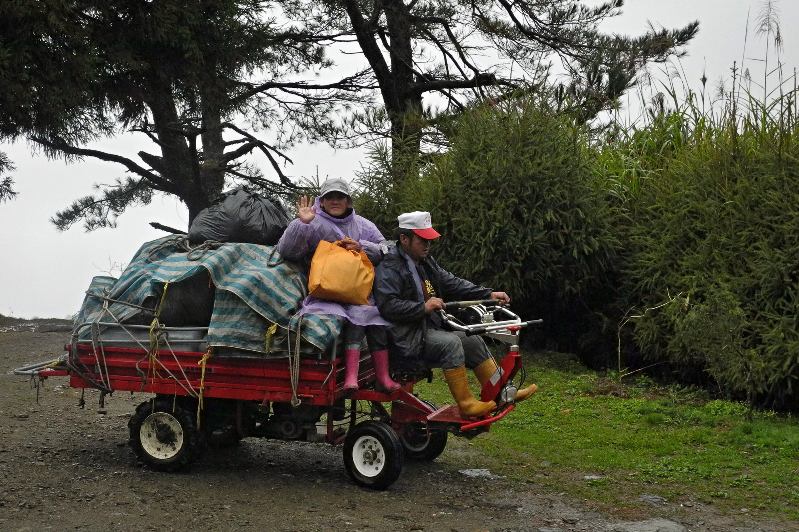 Měníme plány, druhá polovina historické stezky, je prý po letních tajfunech neprůjezdná a nebezpečná a horská chata na hřebeni pravděpodobně zavřená. Počasí nevypadá, že by se mělo umoudřit a po zmínce, že výš v horách v noci napadl sníh se námi plánovaný přejezd na druhou stranu ostrova ruší. Zabalení jsme opravdu hodně nalehko – 2 trička, jedny kraťase, mikina, lehká bunda a letní spacák. Pár čokolád a oříšky na denní přejezdy. Nemáme jistotu, že dál narazíme na otevřenou chatu…
