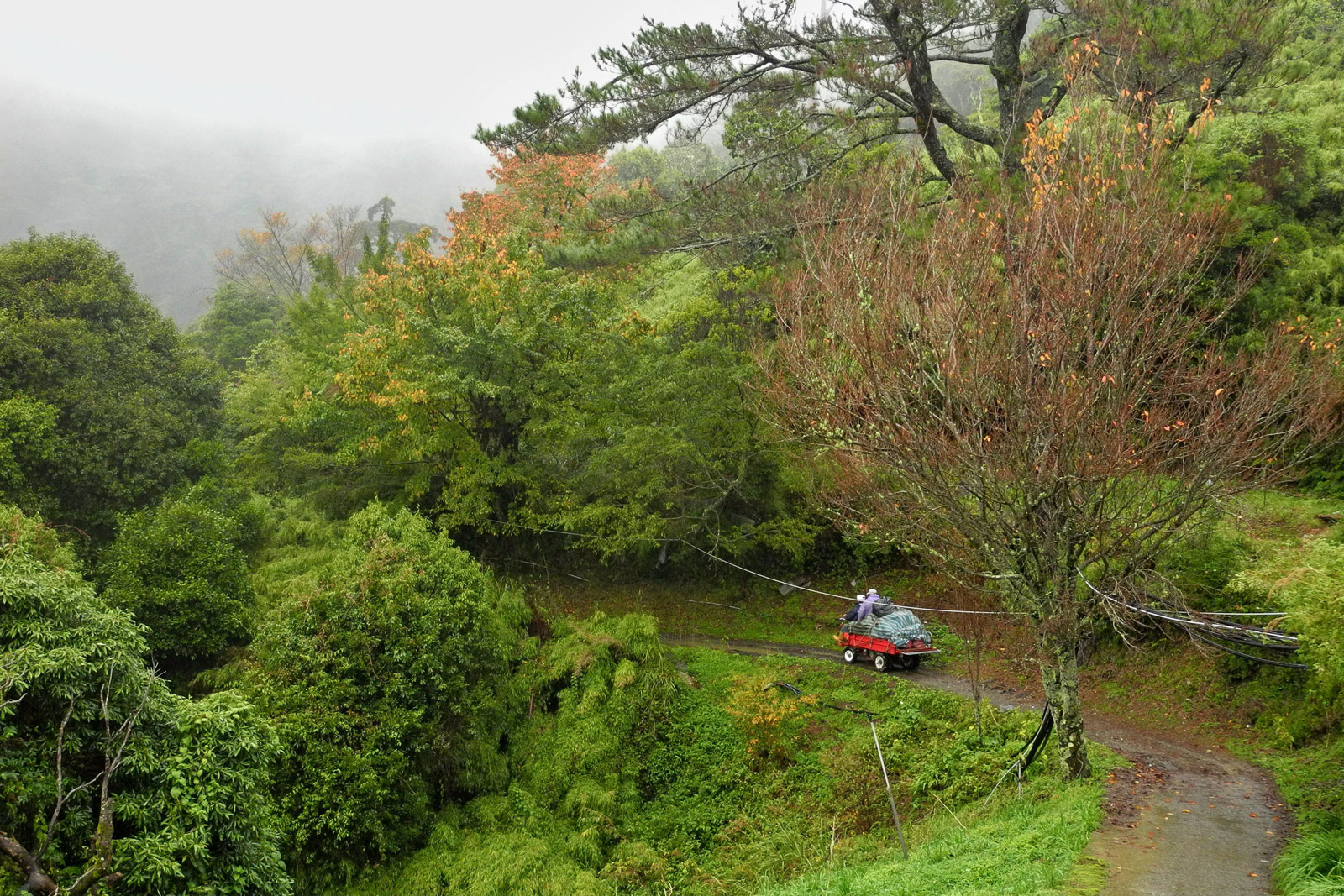 Po krátkém odpočinku nás ve 4 ráno vyzvedává domluvené taxi. Nakládáme kola a hurá do hor! Po hodině jízdy přijíždíme do Wushe, poslední výspy civilizace před odbočkou do hor. Začíná poprchat. Na radaru zatím nejsou žádné srážky vidět a předpověd stále slibuje slunečno, ale trochu nás znervozňují blížící se mraky z tajfunu, který před pár dny přešel přes Filipíny. Již za poměrně vydatného deště vyjíždíme do hor. Čeká nás 20 km výjezd uzoučkou silničkou z 1 000 m do 1 900 m. Nad námi je vysoká skalní stěna, pod námi kolmý sráz padající někam do údolí v mlze a silnice popraskaná po tajfunech a zemětřeseních na klidu také nepřidává. Náš řidič se nás několikrát nevěřícně ptá, jestli jsme si skutečně jistí, že na konci té silnice, kam ho směrujeme skutečně něco najdeme…